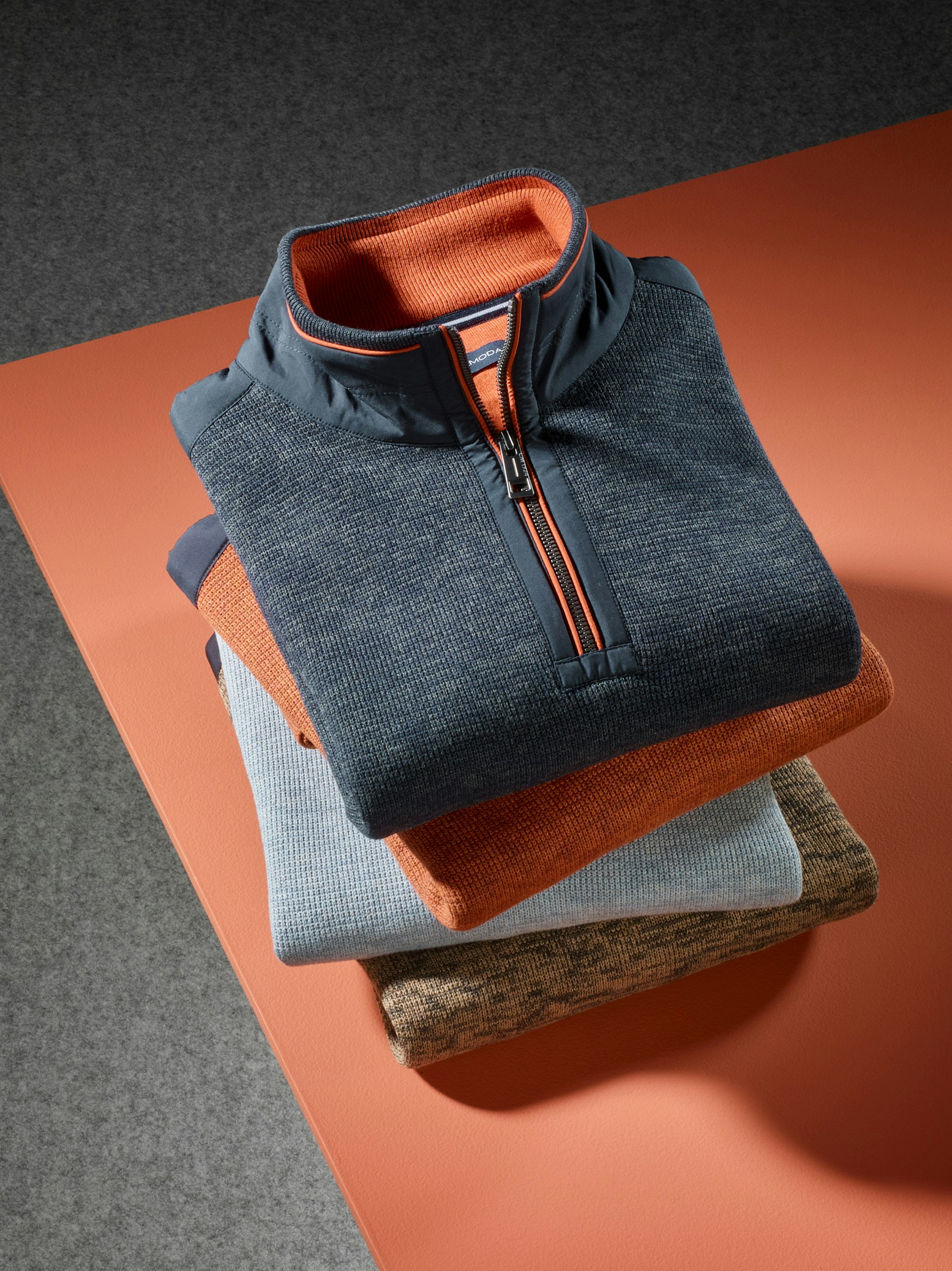 Einige Hintergrundfarben verfügbar, mit Button, Titel kann mobil getauscht werden, Positionen von linker und rechter Kachel können getauscht werden, Main Teaser mobile first (Casual Look)