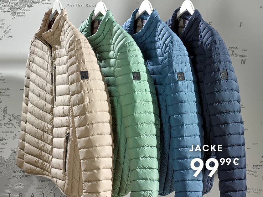 Jacken - Von leichten Steppjacken bis zu funktionalen Softshelljacken – mit oder ohne Kapuze – sind Sie wetterfest und stilvoll unterwegs. Durch ihre klare Linienführung lassen sich unsere Jacken leicht kombinieren und bleiben saisonal aktuell.